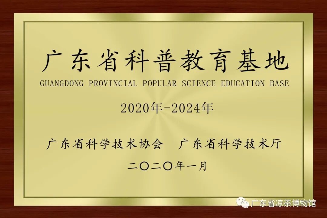 日前,广东省科技厅、广东省科学技术协会授予广东省凉茶博物馆“广东省科普教育基地”荣誉。自此,广东省凉茶博物馆成功晋升成为省、市、区三级科普教育基地。
